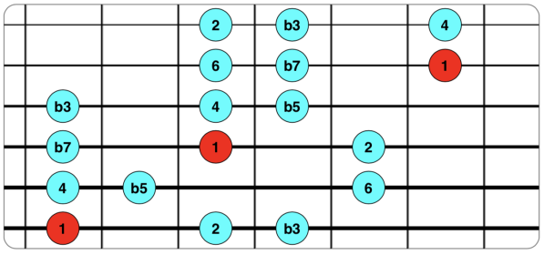 Intervalos: 1 b2 b3 4 b5 b6 bb7